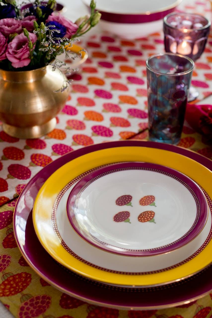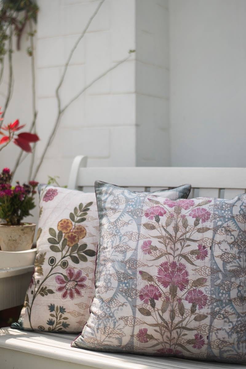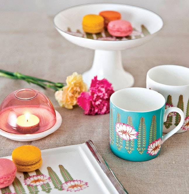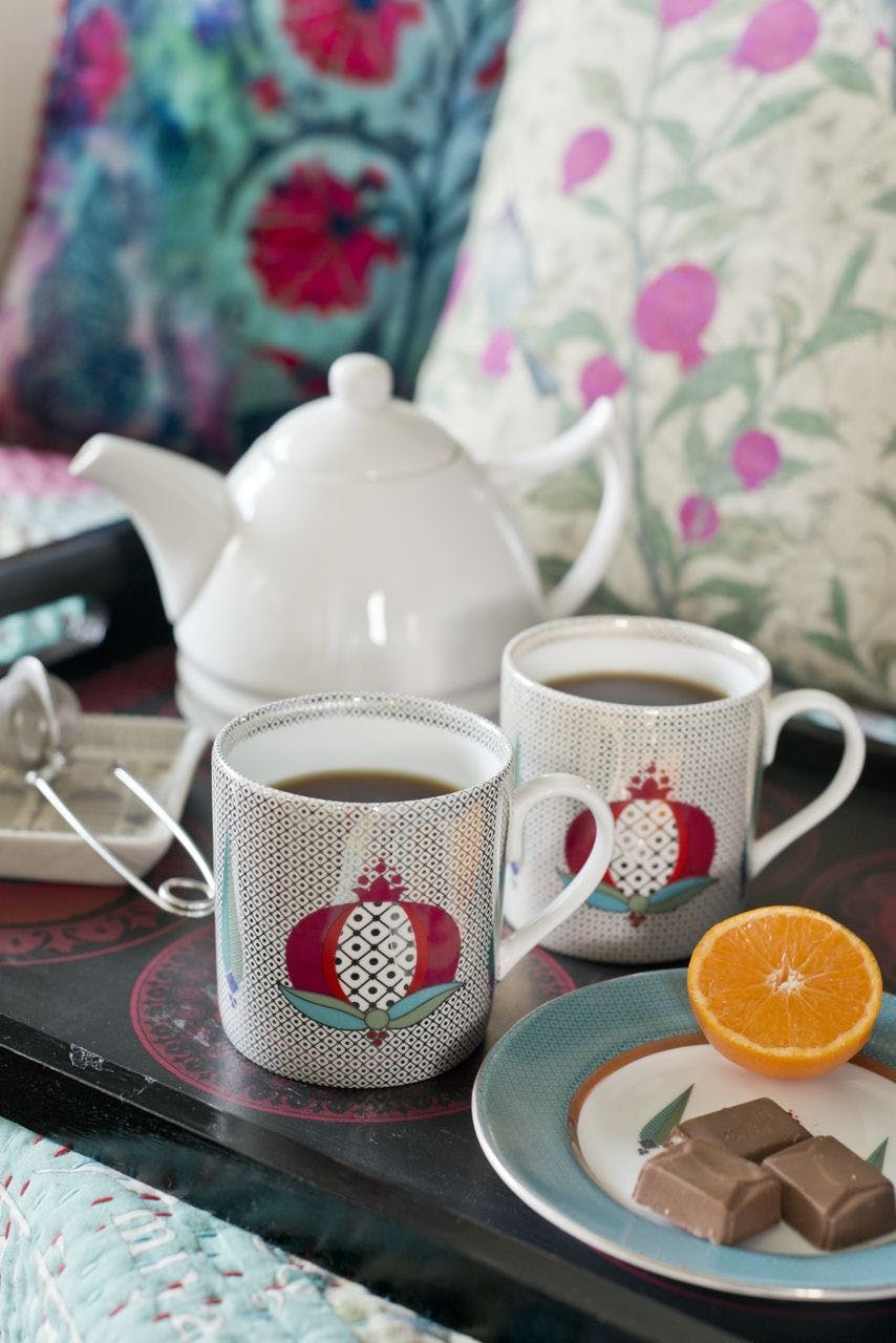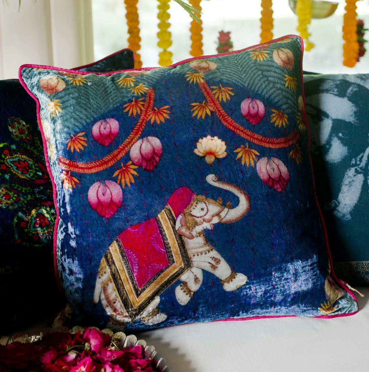 Every season at Good Earth, Pavitra designed textiles inspired by the theme of the year. These took the form of cushions with digital and block prints that extended the design narrative, while making a statement all their own. Delightful, quirky and filled with character, these motifs made natural conversation pieces. One of Pavitra’s earliest creations, titled ‘Retro Raja’ and featuring a very stylish turbaned man on jewel-toned silk, became an instant best-seller and an iconic product for the brand.
