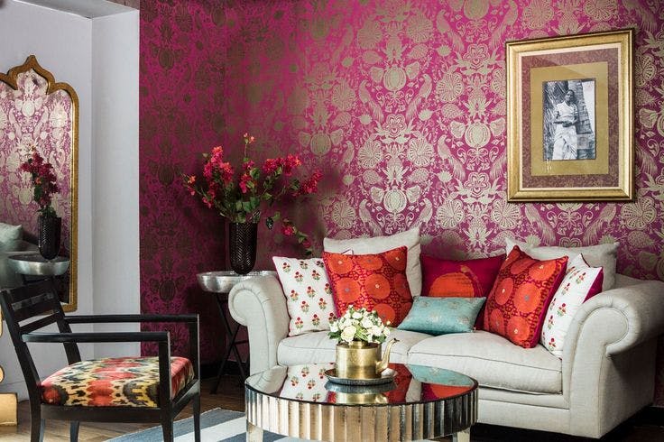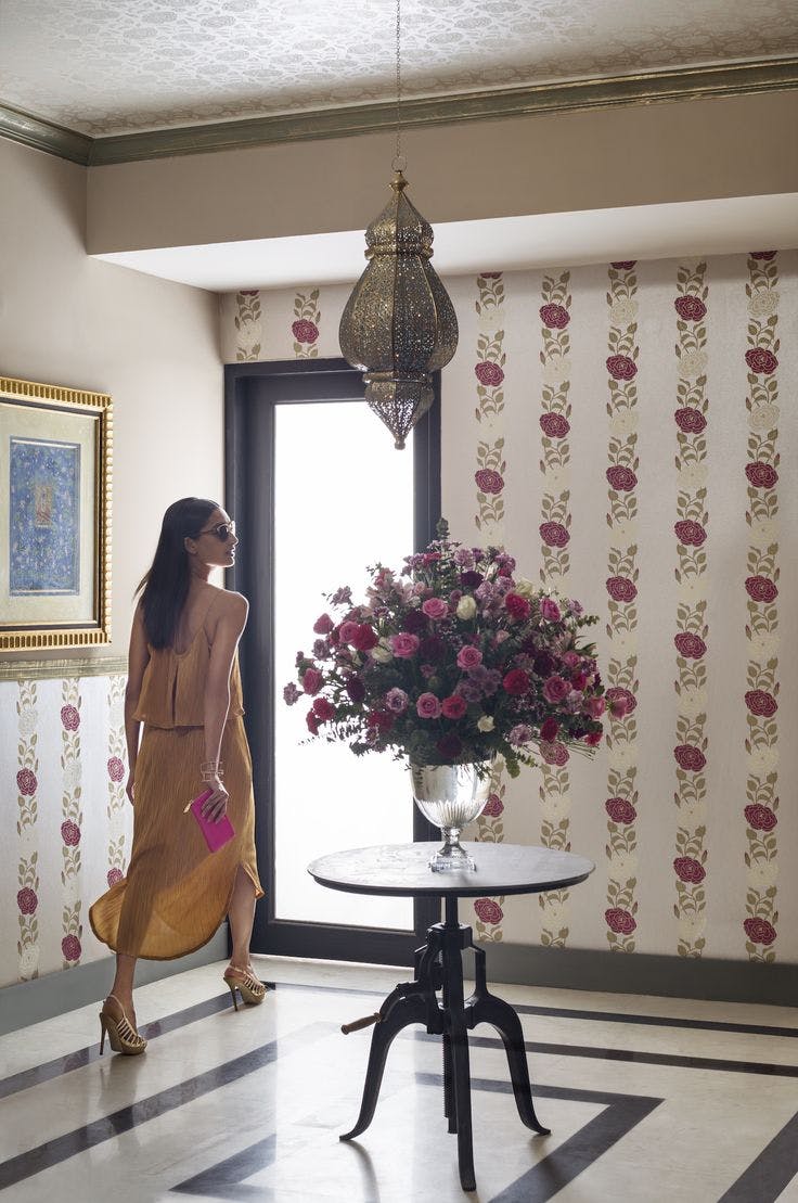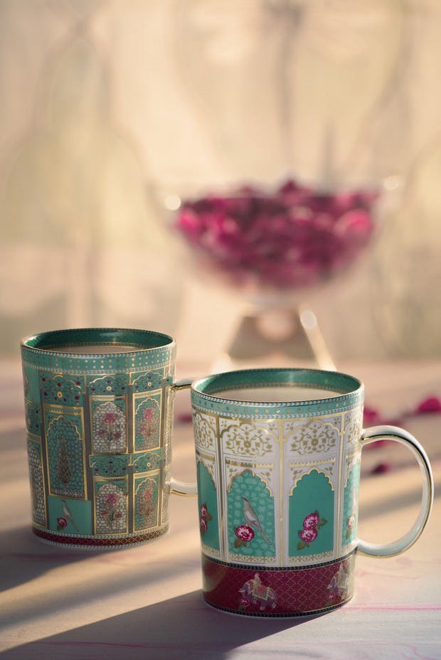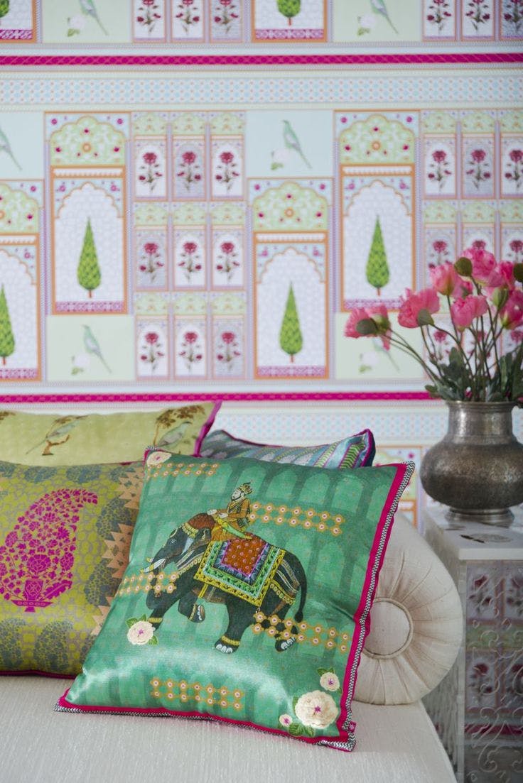 Shimmers with the leitmotifs of vintage Persian miniatures and the enchanting gardens of the Mughals.