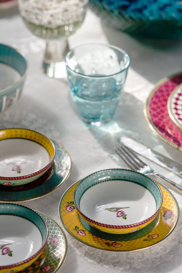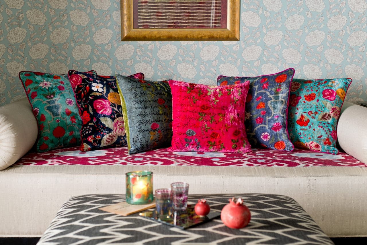 Echoes with the design legacies of Central Asia with iconic ‘Suzani’ patterns and the tulips beloved everywhere from Constantinople to Bokhara.