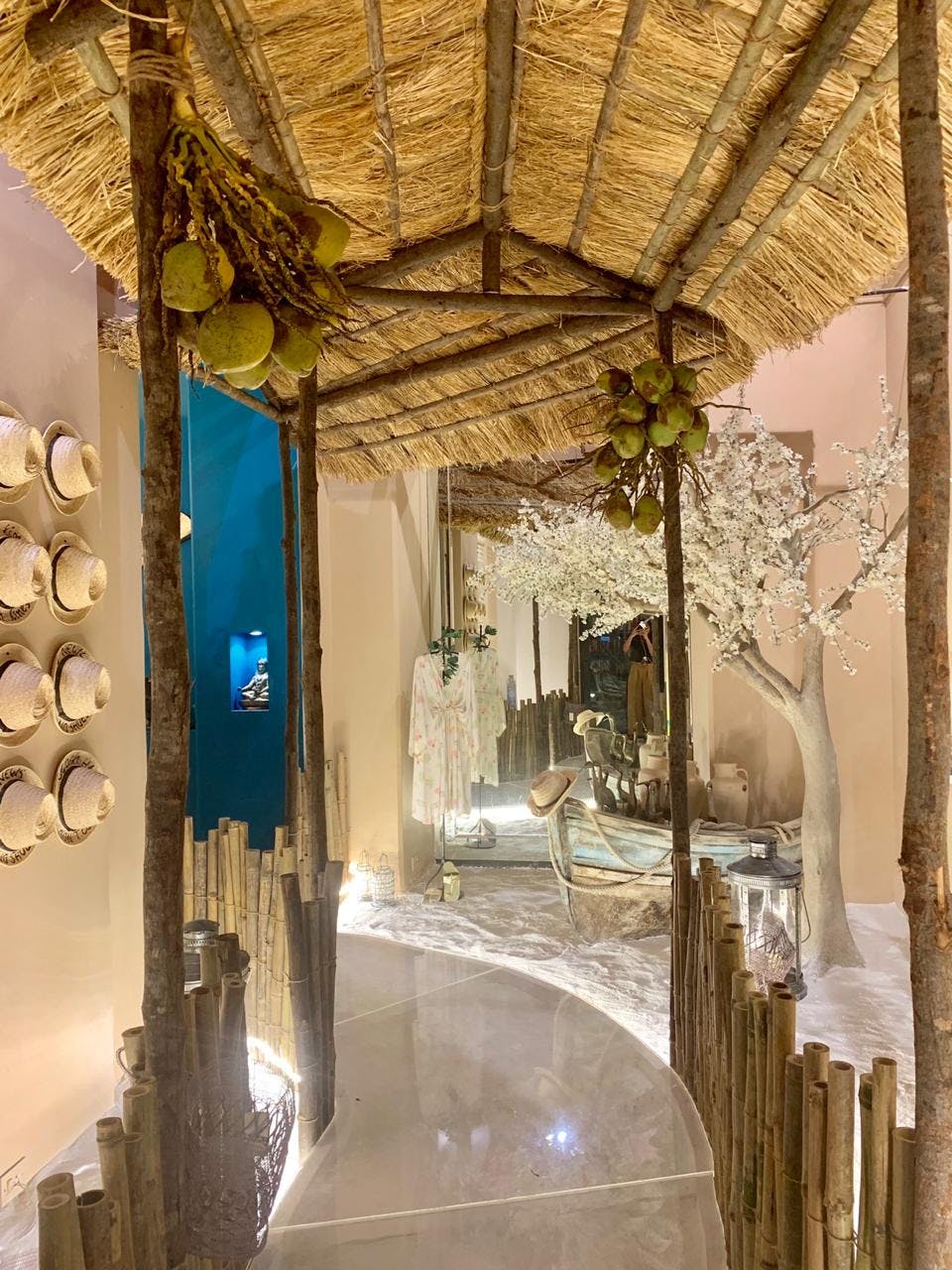 Sandy trails wind through the stores, leading the imagination to the golden beaches of the Maldives. The design language of Maladvipa was inspired by the tranquillity of island life in the Indian Ocean. The stores were awash in colours of the sea, a playful teal shading to a rich indigo, and the underwater lights of anemone and jellyfish twirling in the current.