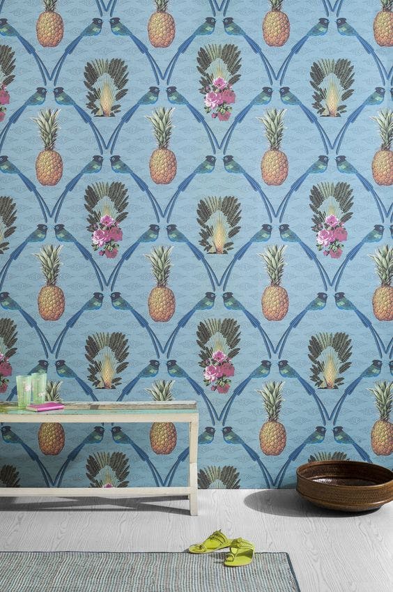 Interprets the beauty of an island paradise and stories of travels to exotic lands in the East through the classic 18th-century motif of the tobacco leaf.