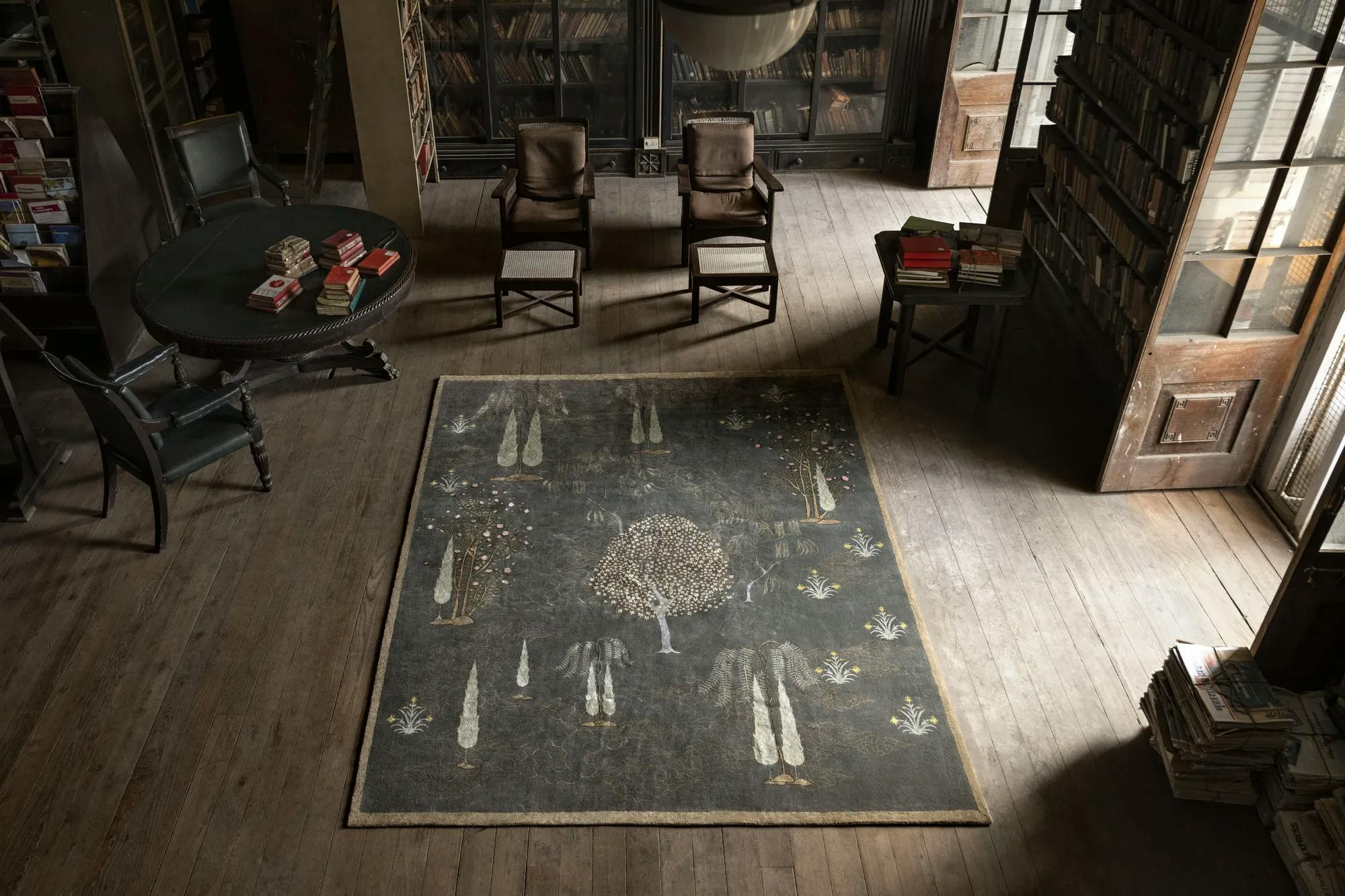 Majnun is a limited-series edition of five hand-knotted rugs with threads from diverse design histories woven in. We translate some of the most iconic carpet traditions along the Silk Road, from Persia to Asia, using a contemporary design vocabulary. The influences for this collection include motifs from the Mughal ateliers to talismans from Tibetan mysticism to art from Imperial China. Along the way, we encounter the little-known Afghan folk tradition of ‘war carpets’.