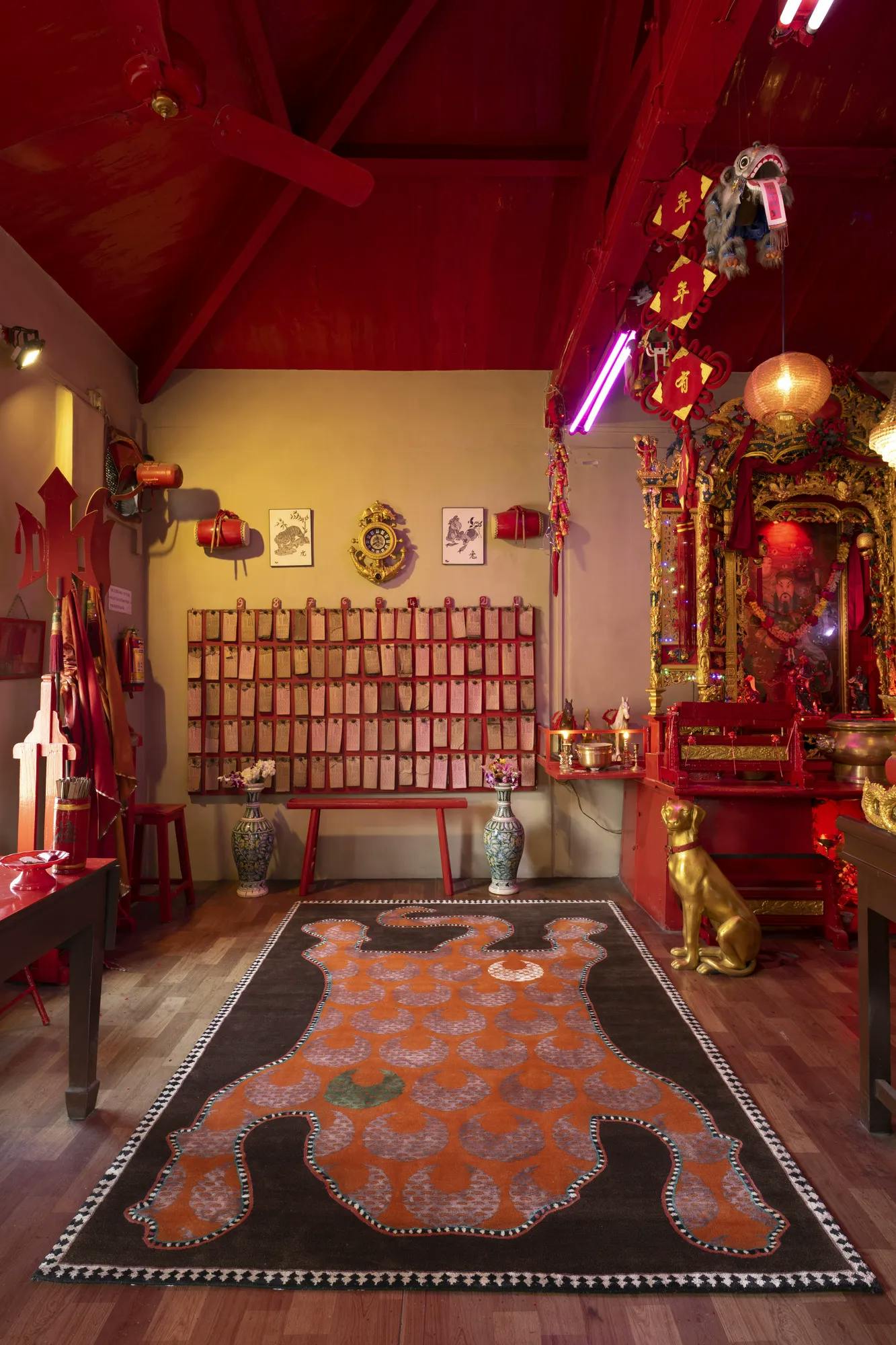 Power and mysticism radiate from the stark form of the Tibetan tiger rug. For centuries in the wind-swept wilderness of the Himalayas, monks sat cross-legged on rough animal pelts like these, lost in meditation. Embedded within its design is the iconic Buddhist motif of the cintamani, which originated in ancient India and travelled on the wings of faith all the way to the Ottoman Empire. With Sakya, we return the cintamani to the East, astride the Tibetan tiger.